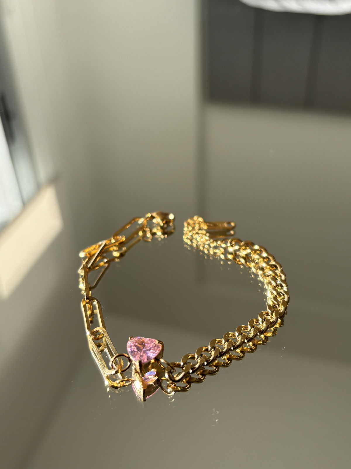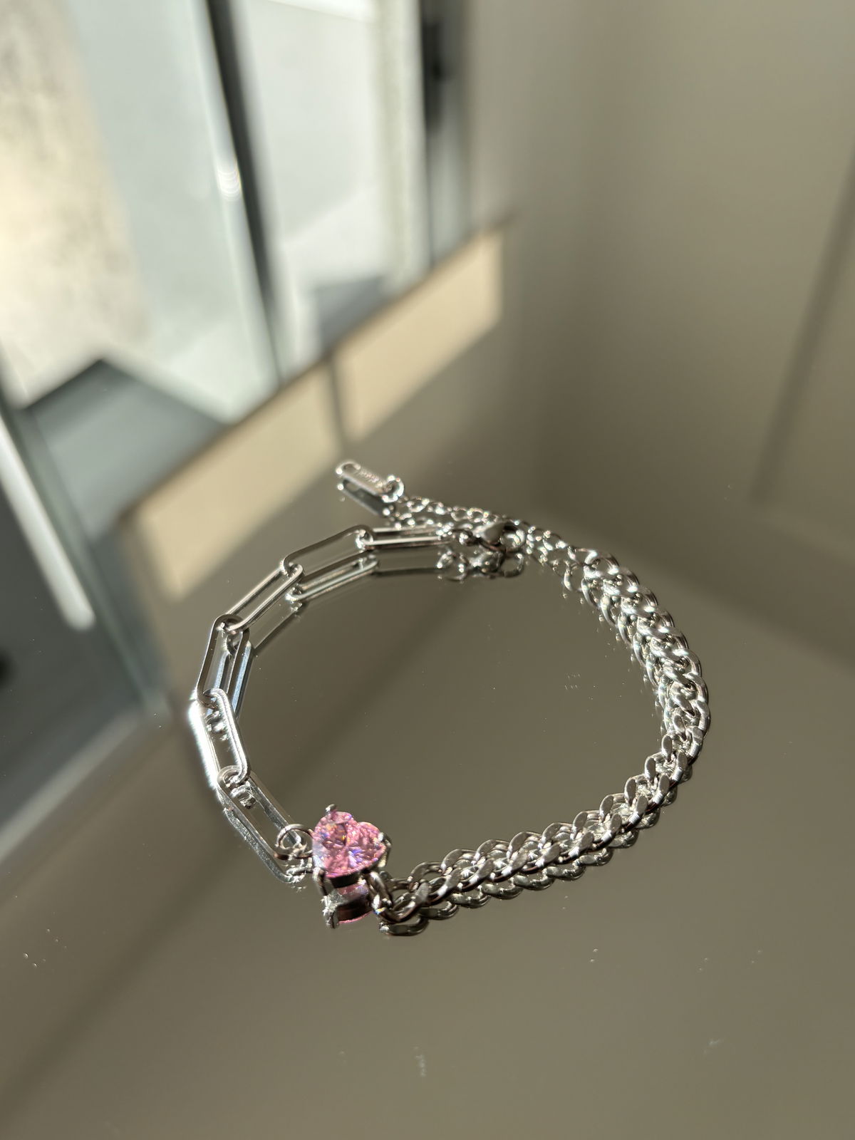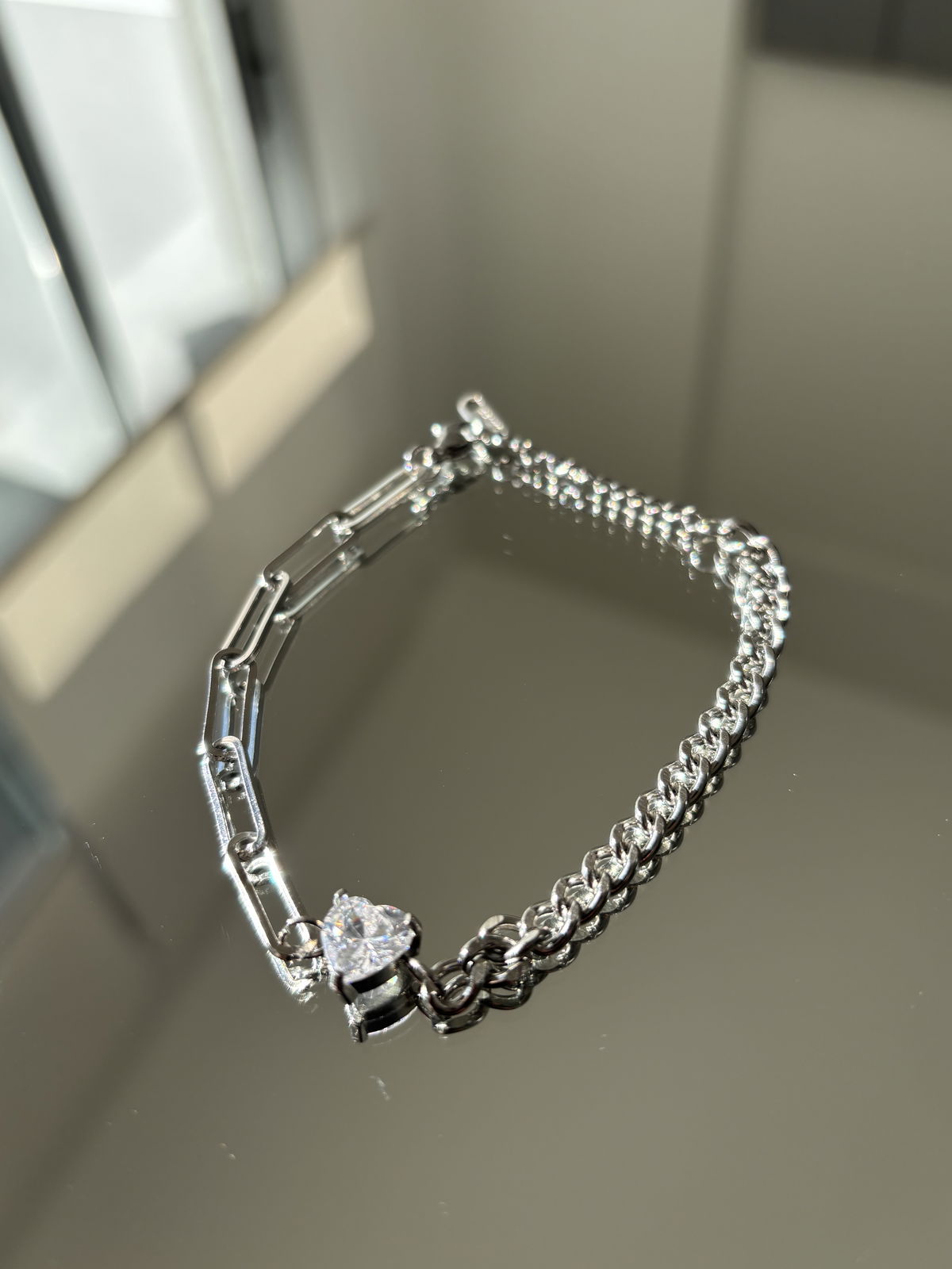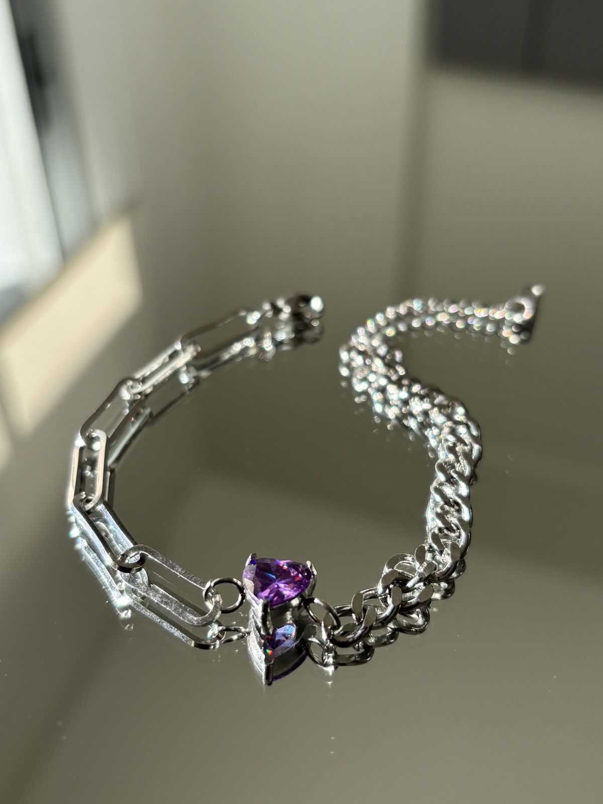 Pulsera cadena combinada con zirconia de color a elección.
